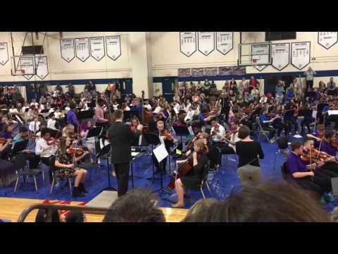 The middle/high schools played Kashmir. Wm knows the song and was very impressed. I told him I would give him $100 if he loudly sang the vocals, but he refused. Instead, he had to awkwardly huddle along the wall waiting to sit down with the middle school (Wm got to play with the 6th grade strings!)